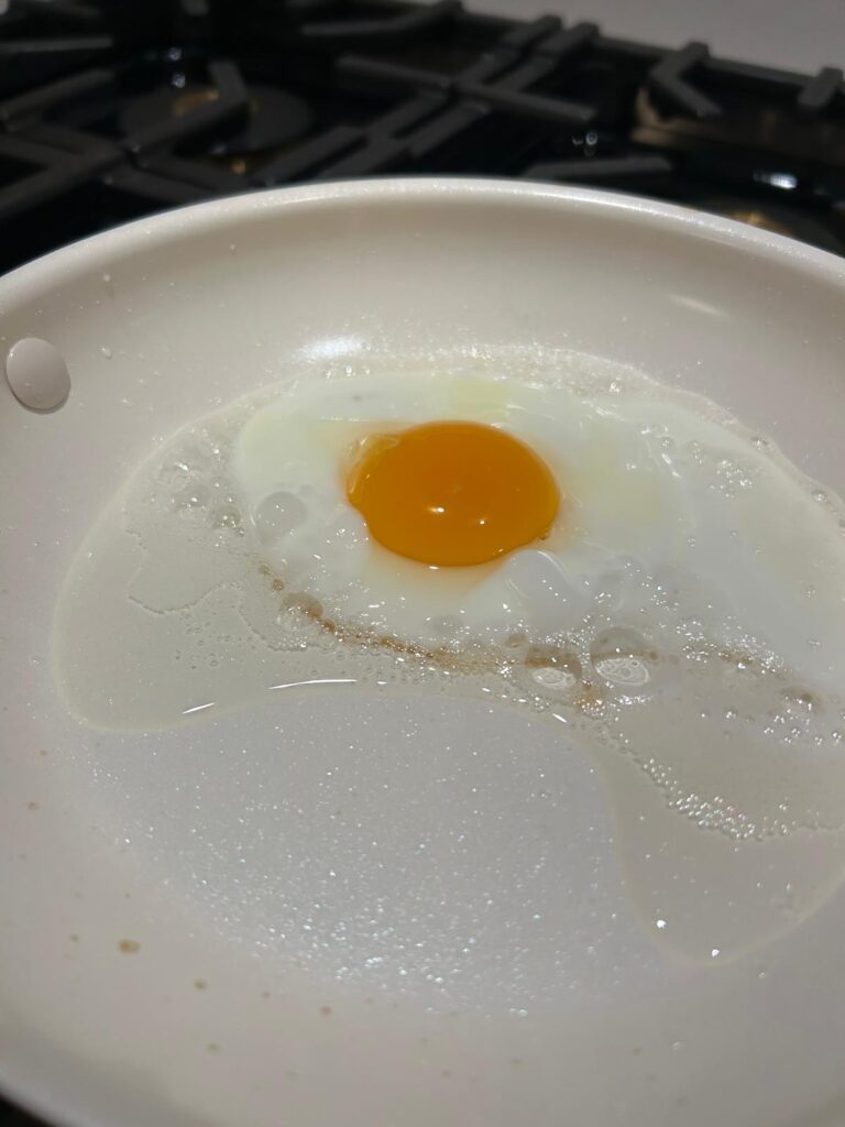 • At the same time, heat oil in a second skillet and fry the remaining eggs until the whites are set but the yolks are still runny.