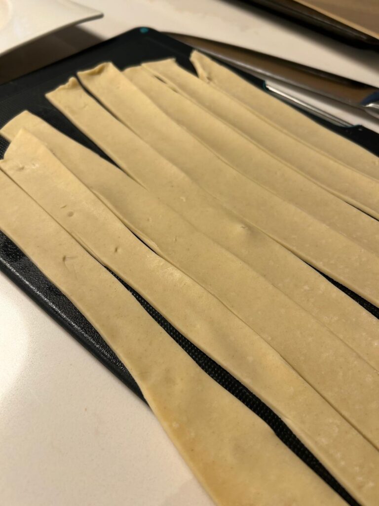 - Slice half-inch thick strips from the dough.