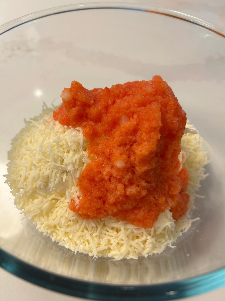 Add this mixture into a bowl with the cream cheese, cheddar, salsa and cumin and mix to combine.