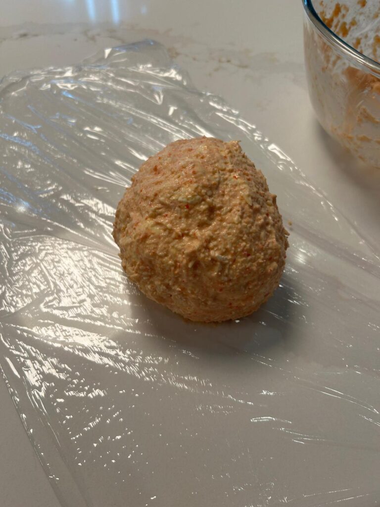 Place into plastic wrap and mold into the shape of a ball. Chill in the fridge for a minimum of two hours.